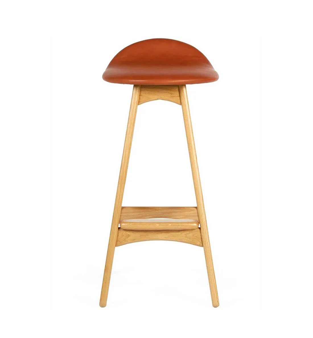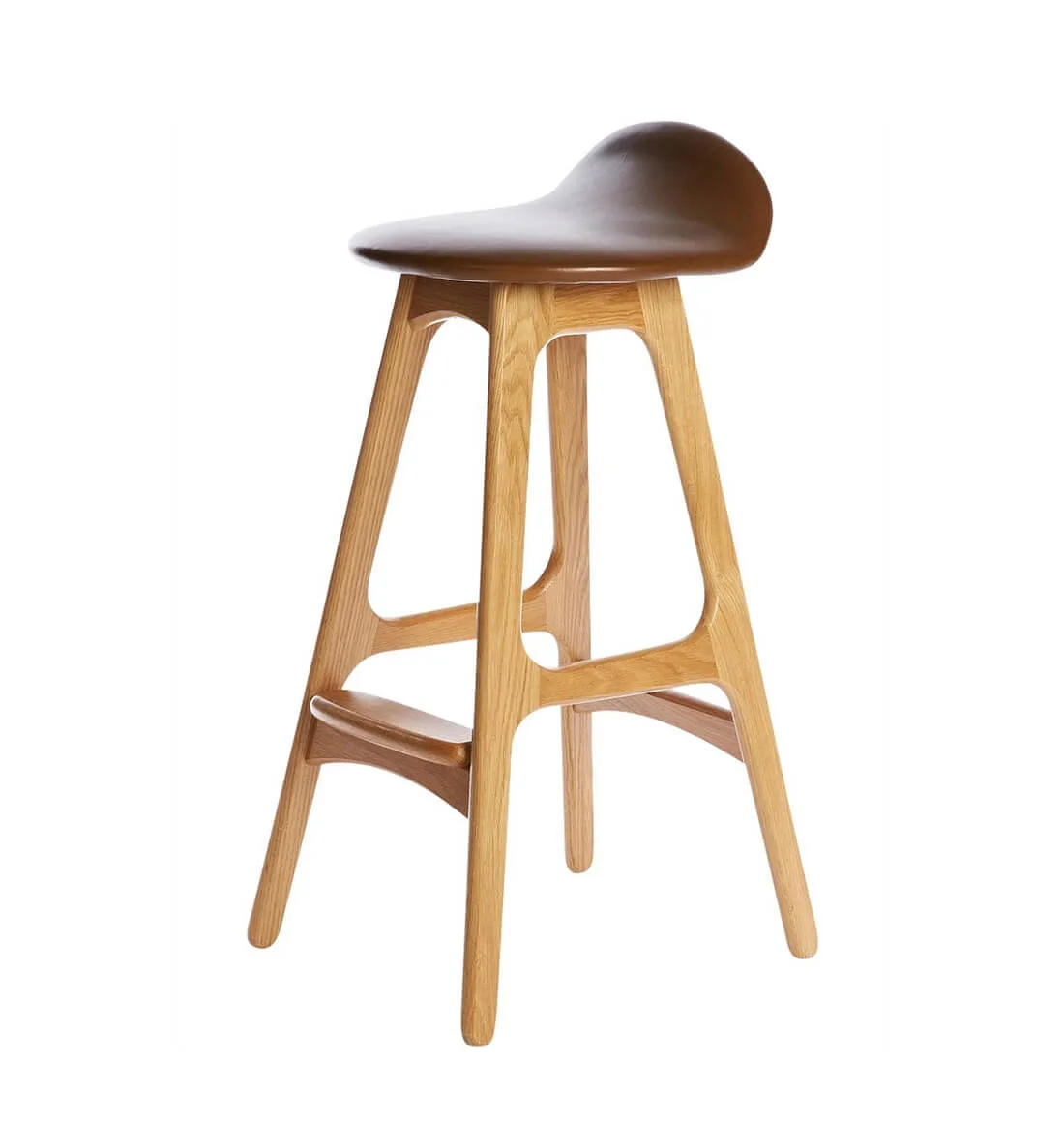 The organic and functional structure of Eric Buch’s design characterised the true Danish design tradition, evident in Erik Buch Bar Stool from 1964. The use of solid maple wood creates a refreshing, organic look that’s enhanced by distinctive grain patterns for natural artistry. A cushioned seat with lipped edges curves up just slightly to create a small lower back for optimal comfort and support while a footrest built into the base provides added support. This stool is a perfect addition to any international interior.